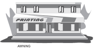 Awning: An architectural projection or shelter projecting from and supported by an exterior wall of a building and composed of a covering of rigid or non-rigid materials and/or fabric on a supporting framework that may be either permanent or retractable.
