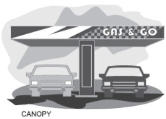 Canopy, attached: A multi-sided structure or architectural projection supported by attachment to a building on one or more sides and also supported by columns or supports at additional points.