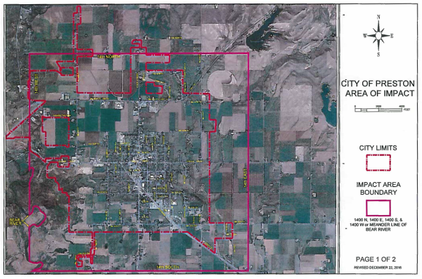 The area of city impact is hereby adopted as the area designated on the attached area of city impact map, incorporated herein by reference, and more particularly described as follows, provided that the area described imposes no land use restrictions except as specified in other sections of this chapter.