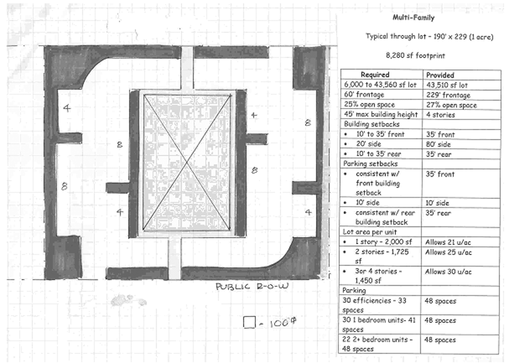 All setbacks as required in this subsection shall be measured from proposed rights-of-way.