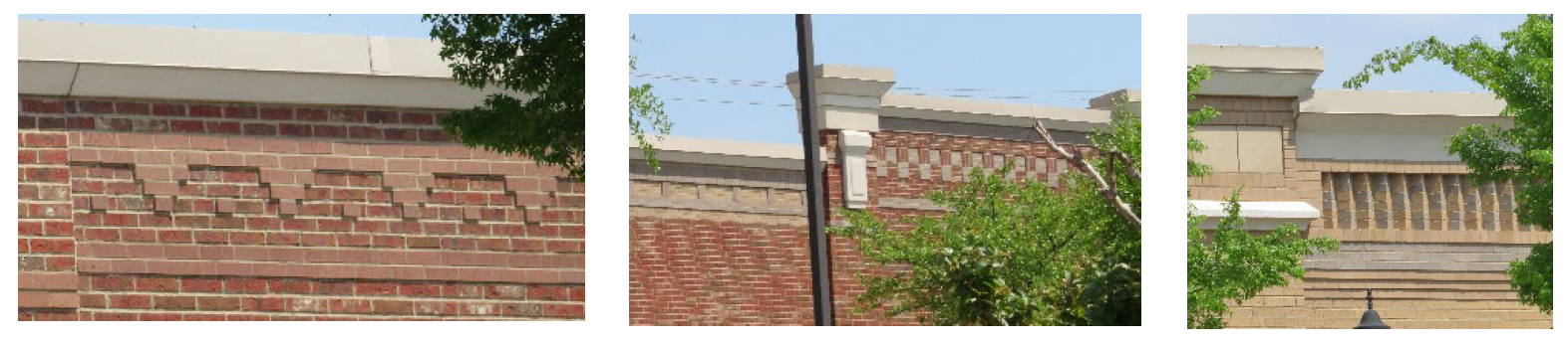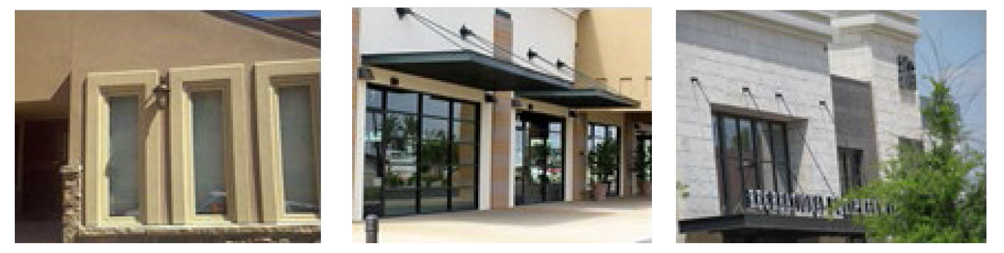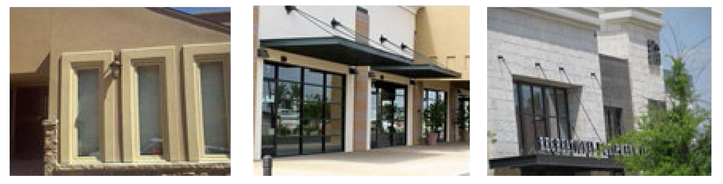 • Articulated lintel (i.e. soldier course in brick or material change EIFS or cast stone with minimum one-half inch projection)
