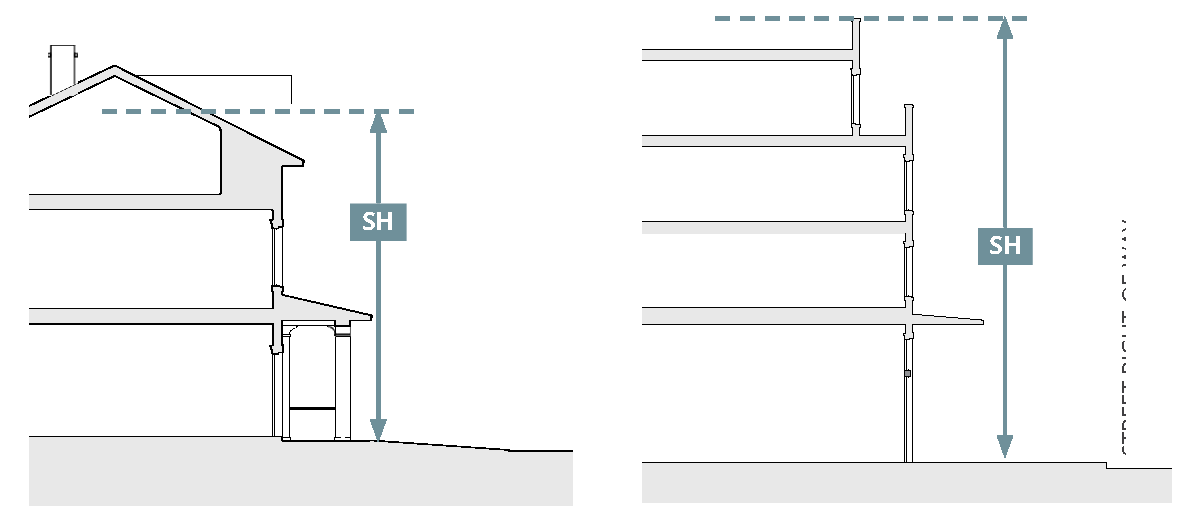 Figure 1: Illustrations of structure height (SH) for a gable-roofed structure (left)