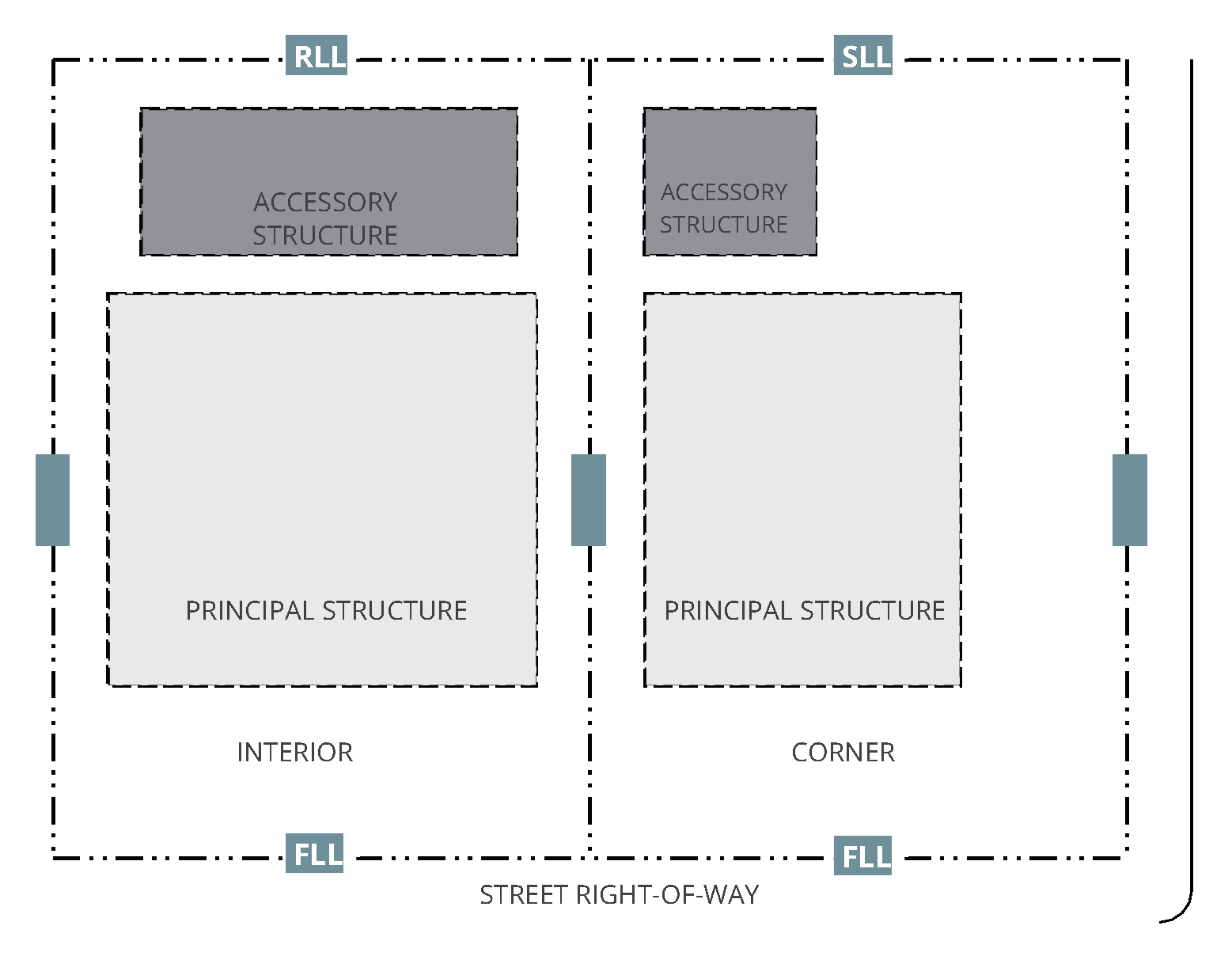 Figure 2: Illustrative graphic showing lot lines for an interior lot and a corner lot.