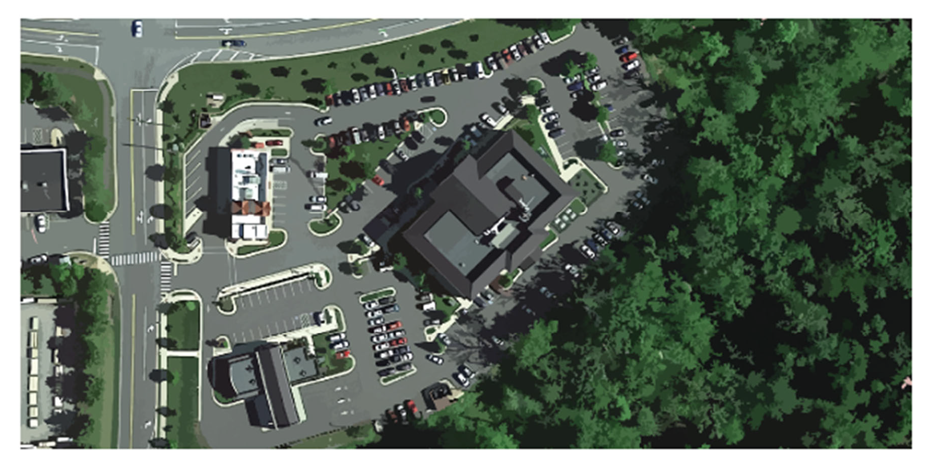 On large sites, development of several smaller buildings to create visual interest, human scale and variety, shall be achieved, rather than a single large building. The use of smaller buildings, appropriately positioned and sited as a means of breaking up large parking expanses shall be achieved.