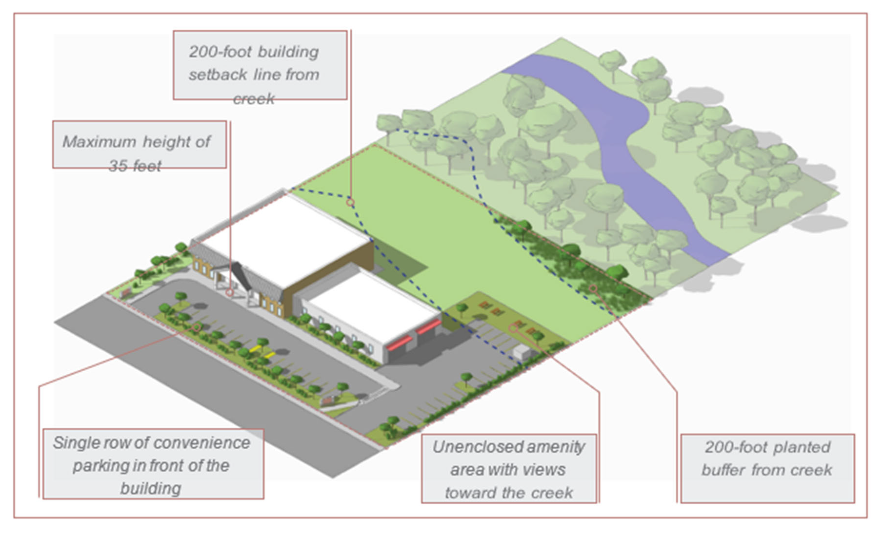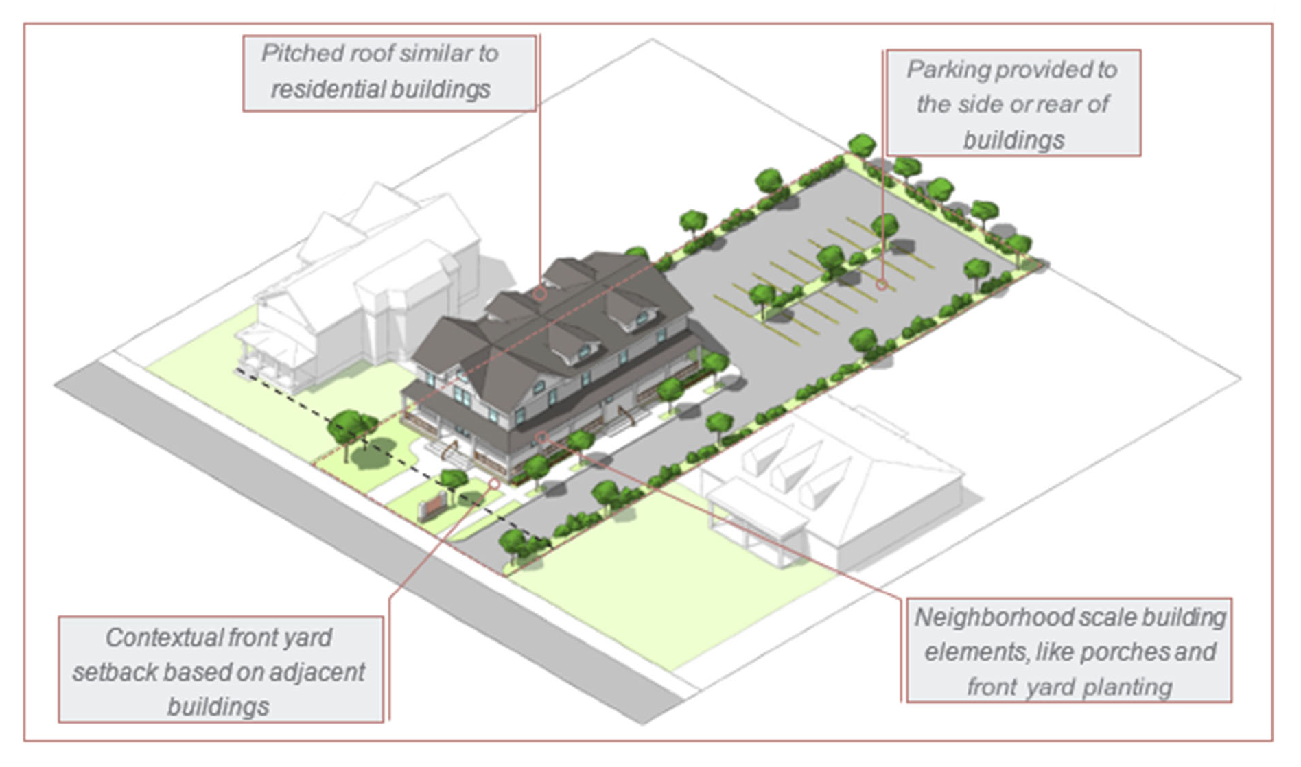 The east main overlay district is intended to promote a more pedestrian-friendly retail destination where it is easier to walk between surrounding neighborhoods and commercial uses. The scale of development should still remain compatible with the rural residential character of Purcellville. Enhancing the green space and tree canopy along Main Street and Maple Avenue, as well as providing more open spaces within the redevelopment, should be a top priority. The east main overlay district is comprised of commercial neighborhood scale and commercial medium scale land use types as described in the 2030 comprehensive plan.