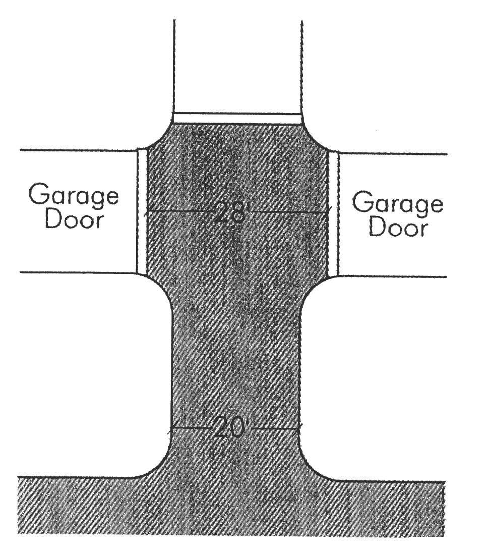All driveways providing access to a garage shall be paved to a minimum of 20 feet in length, unless an automatic roll-up door is provided, in which case the driveway length may be paved to a minimum of 18 feet in length.