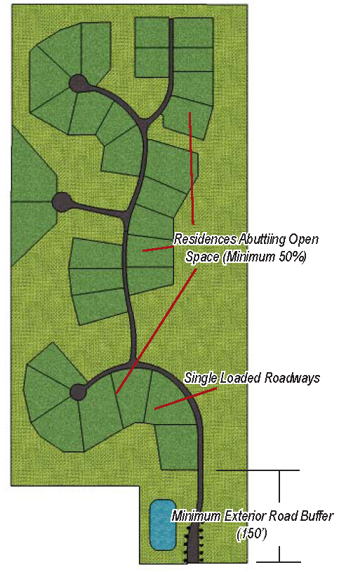 Minimum Exterior Road Buffer - A minimum of a one hundred and fifty (150) foot buffer from the proposed right-of-way along any exterior County Road or State Highway.