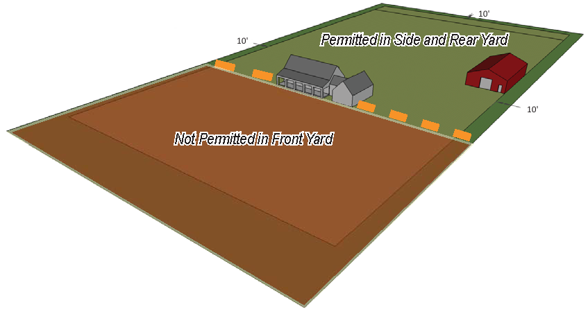 | Minimum Front Yard Setback | Not Permitted in Front Yard |
