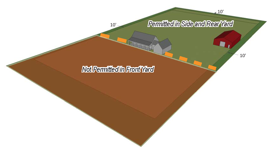 | Minimum Front Yard Setback | Not Permitted in Front Yard |