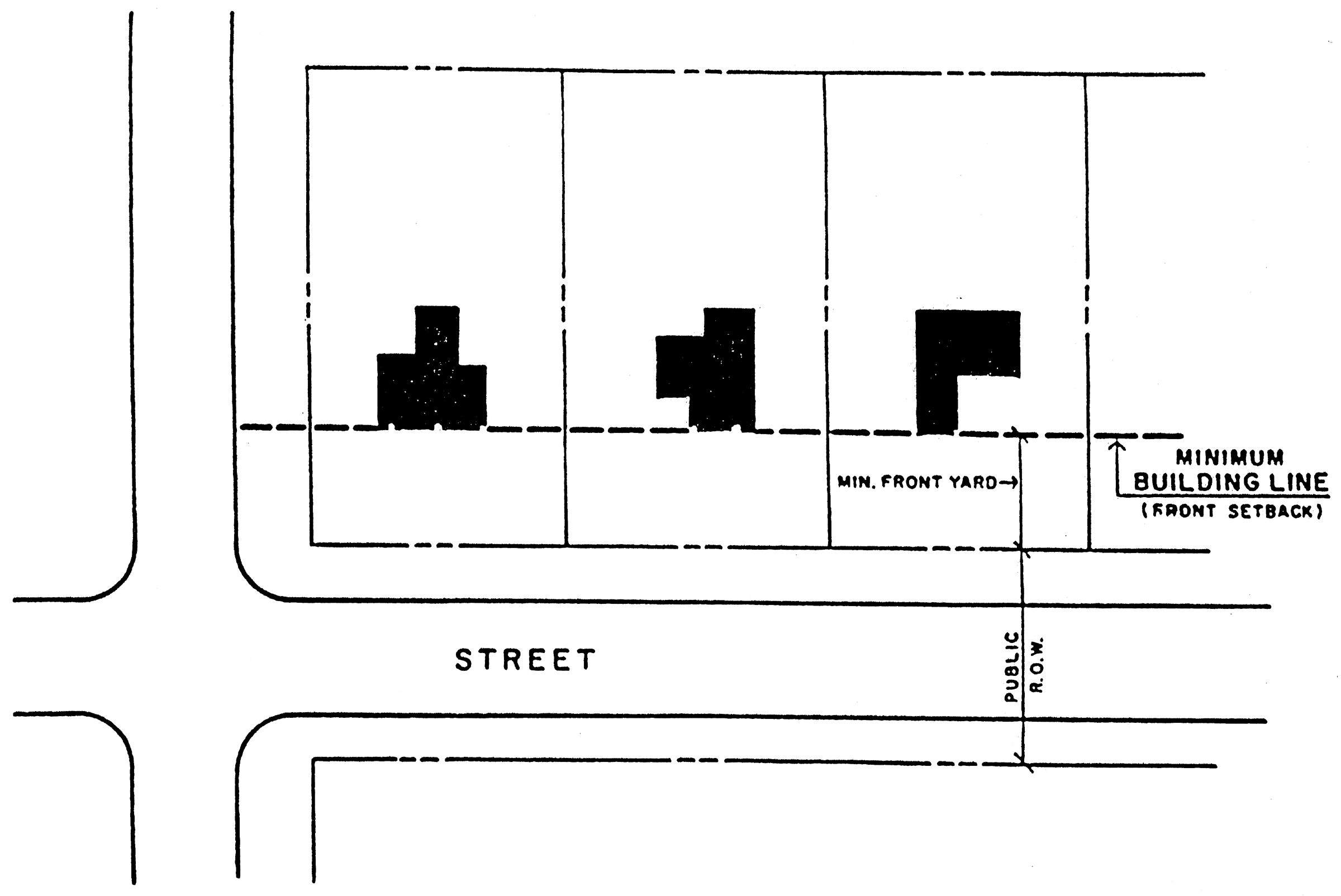 SETBACK: Is the distance required to obtain minimum front, side or rear yard open space provisions of this Ordinance.