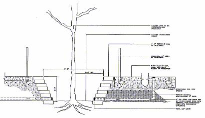 Retaining wall. The area within the tree protection zone is left at the original grade constructing a dry retaining wall. The retaining wall shall be porous to allow for aeration.