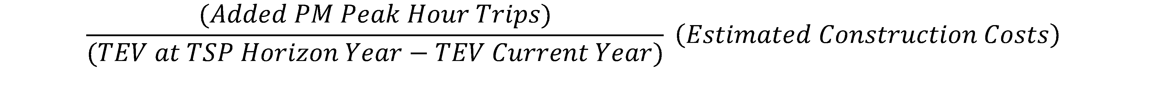 Proportionate share calculations must be submitted with the TIA. The TIA must include the proposed timing of the payment(s) based on timing of the impact(s). These costs will be based on the proportion of the project trips to the projected horizon year traffic volumes as identified within the adopted TSP or other applicable plan as follows: