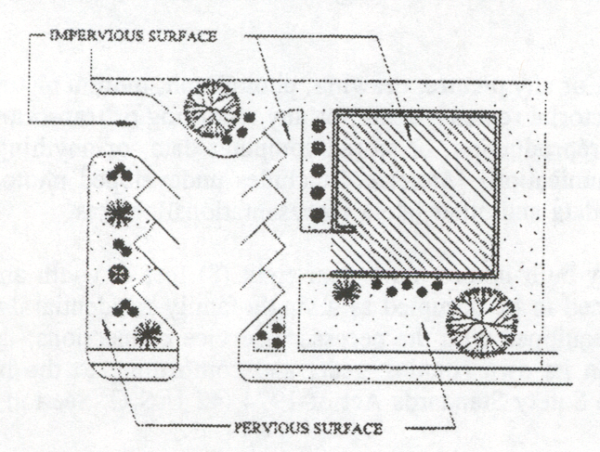 IMPERVIOUS, PERVIOUS SURFACE Any part of a lot that is covered by buildings, structures, parking areas, driveways and any other surfaces which reduce or prevent absorption of stormwater, likewise, a pervious surface is any surface that allows for the absorption of stormwater.