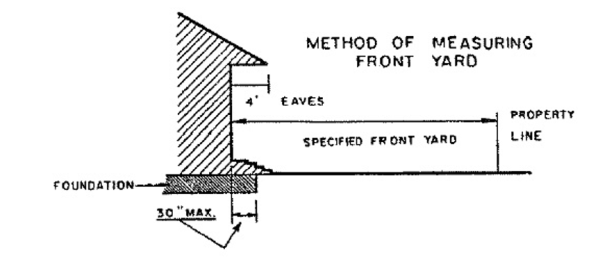 Yard Front - A yard located in front of the front elevation of a building and extending across a lot between the side yard lines and being the minimum horizontal distance between the front property line and the outside wall of the main building.