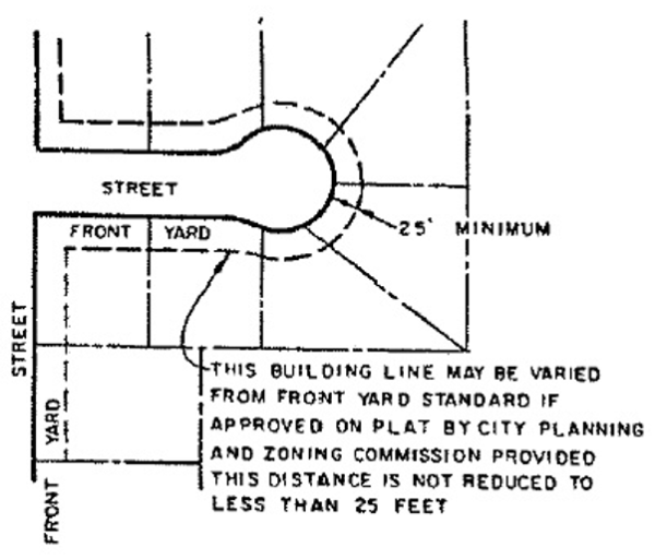 Cul-de-Sac - A street having but one outlet to another street, and terminated on the opposite lines, which provided pedestrian circulations.