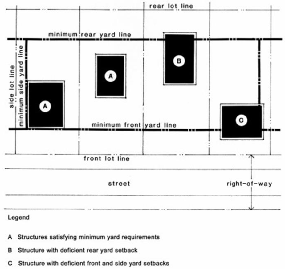 Yard. The area of the same lot between the lot line and the building line, unoccupied and unobstructed by any portion of a building or structure from the ground upward, except as otherwise provided herein. (See Figure 10, Yard Terms.)