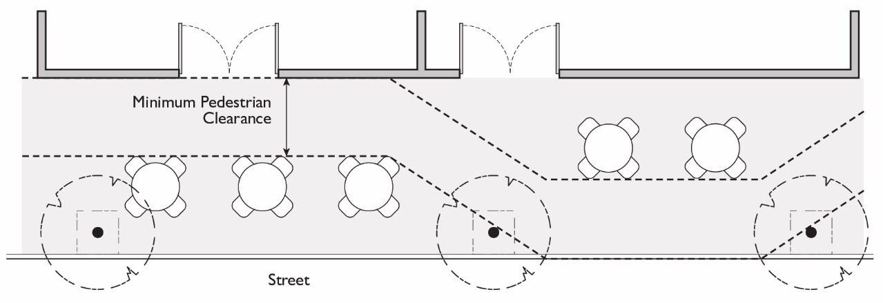 Sidewalk. A paved, surfaced, or leveled area, paralleling and usually separated from the street, used as a pedestrian walkway.