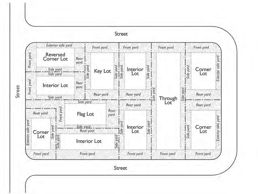 Interior Side Yard. A yard extending along an interior side of a lot from the front yard line to the rear yard line, and to a depth specified for the zoning district in which it is located and measured inward from the interior side lot line.