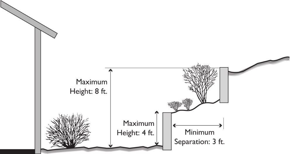 All driveways must have minimum one-foot wide planted area along a side or rear lot line.