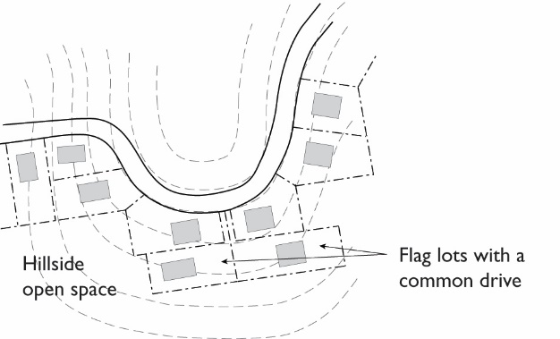 RH Single Family Hillside Residential. This district is intended for residential development comprised of single-family housing on developable portions of hillside lots below the 400-foot elevation. Development in this district must address key environmental challenges and constraints, such as steep slopes and soil erosion, and standards will ensure that development is compatible with hillside conditions and a rural environment. Minimum lot size for this designation is 11,000 square feet, which may be reduced with clustered development.