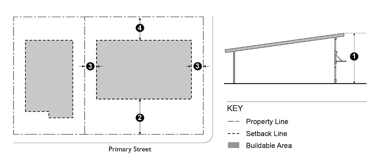 The garage or carport entrance is setback a minimum of four feet from the rear property line;