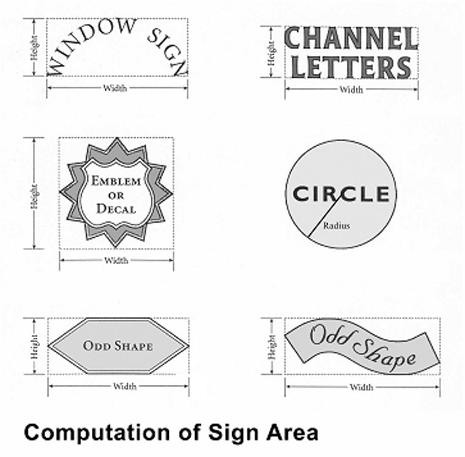 Standards of measurement. Dimensional standards and measurements for signs shall be subject to the following (see illustration):