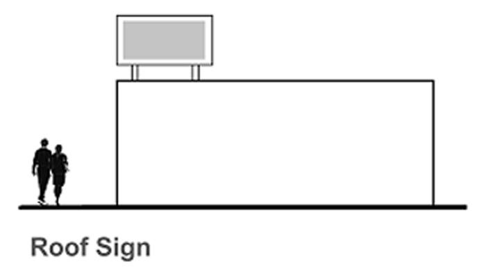 Roof signs, and signs that obstruct window or door openings, inhibit ingress or egress, or interfere with building ventilation.