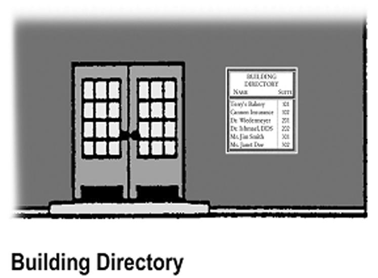 Building directory. Where a single building on a single lot is occupied by more than one business, dwelling or other use above the street level facade (such as a multiple-story office or commercial building), a building directory sign may be erected on the street level facade for these uses, subject to the following (see illustration):