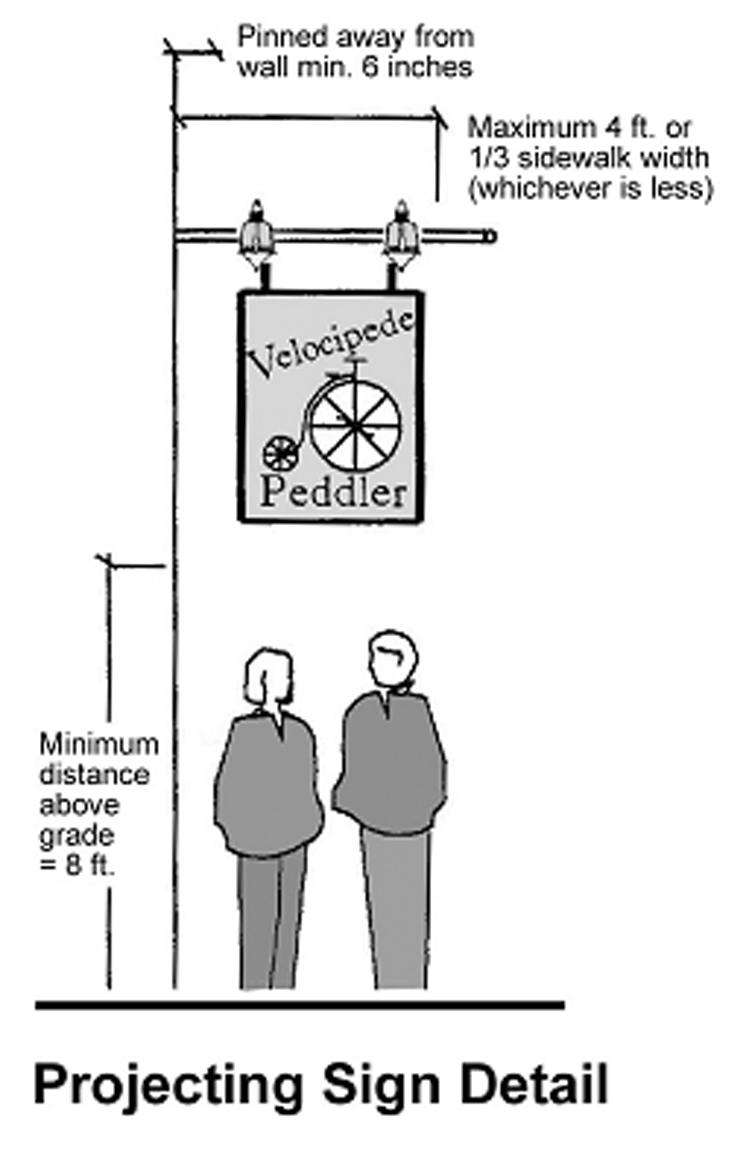 Projecting signs. Projecting signs shall be further subject to the following (see illustration):