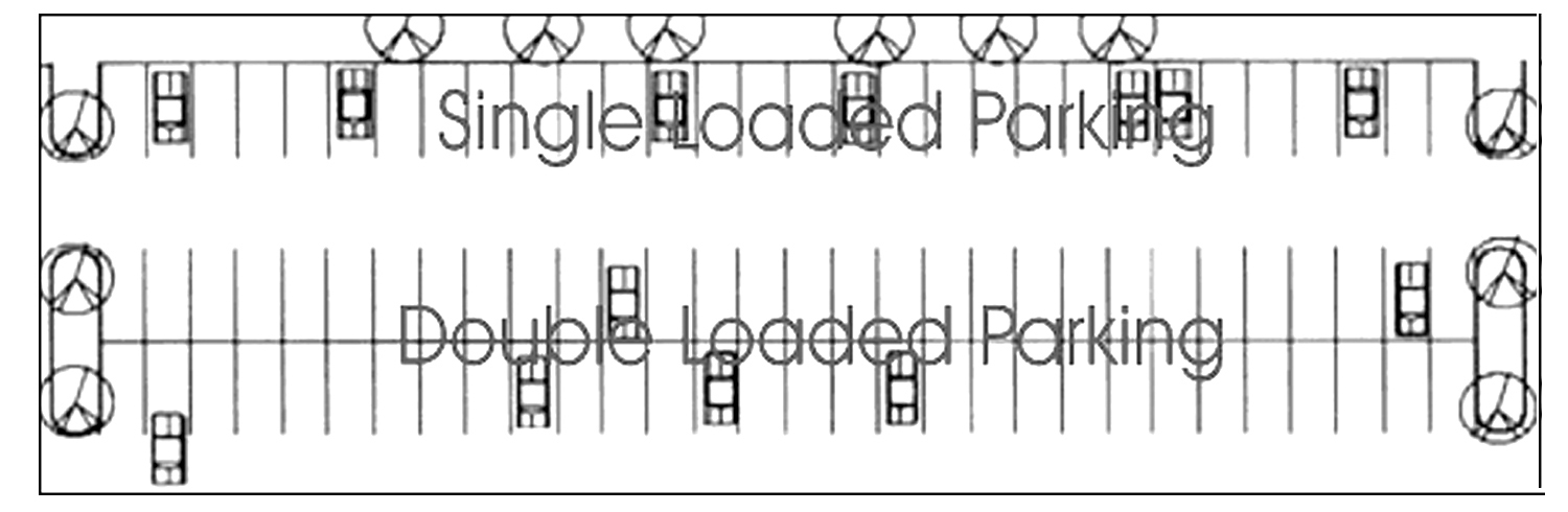 Double loaded parking rows must be accessible on both sides by a drive aisle.