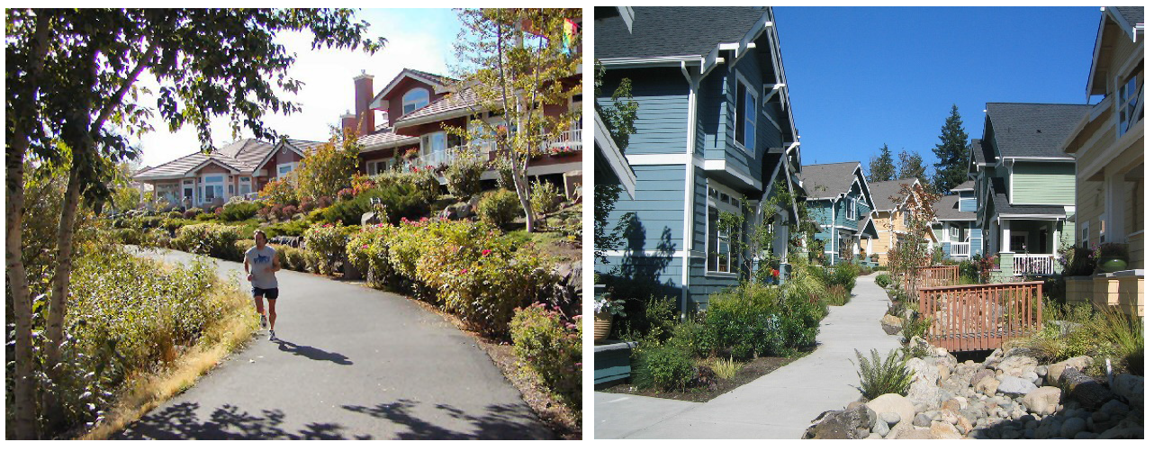 Attractive Streetscapes. The PUD design shall ensure an attractive streetscape, especially along collector and arterial streets, by planting street trees and other vegetative buffers, minimizing the visibility of parking lots and garages, and providing attractive street-facing facades.