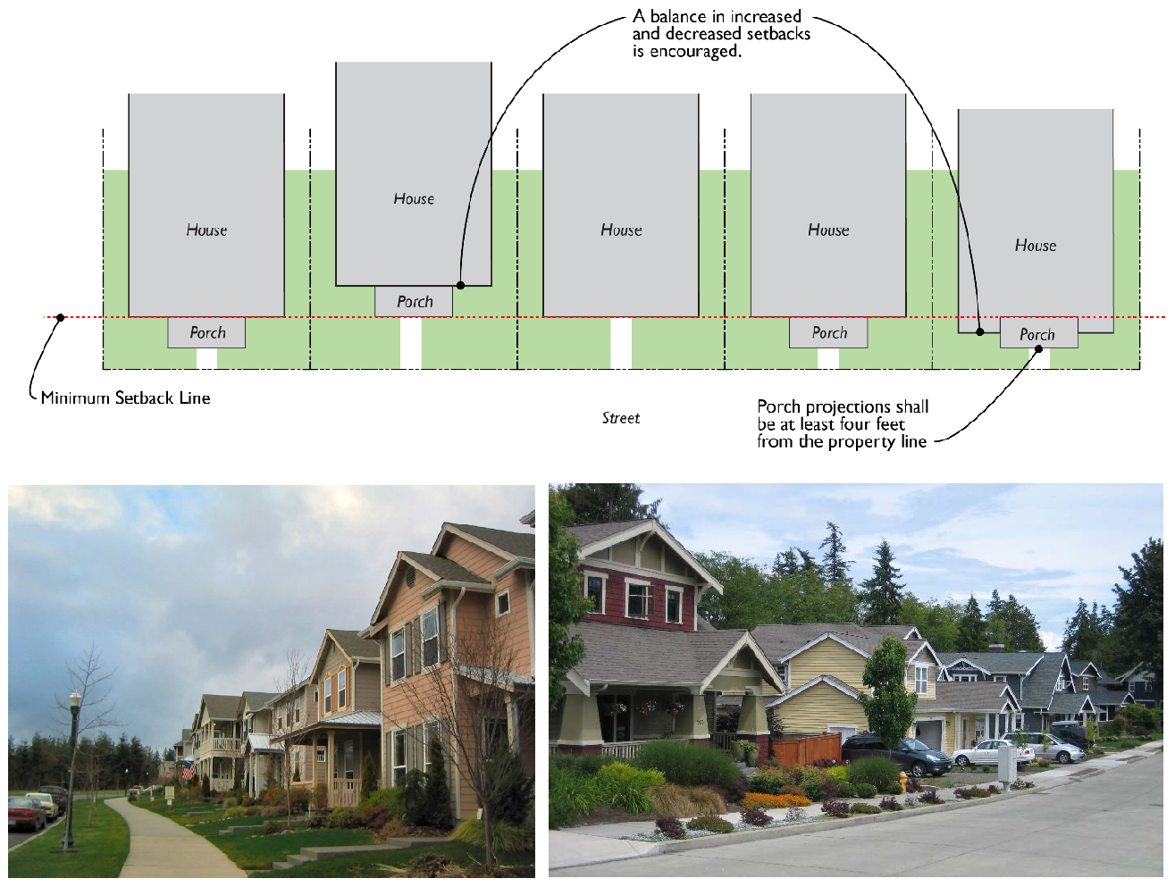 Examples of front yard setback variety.
