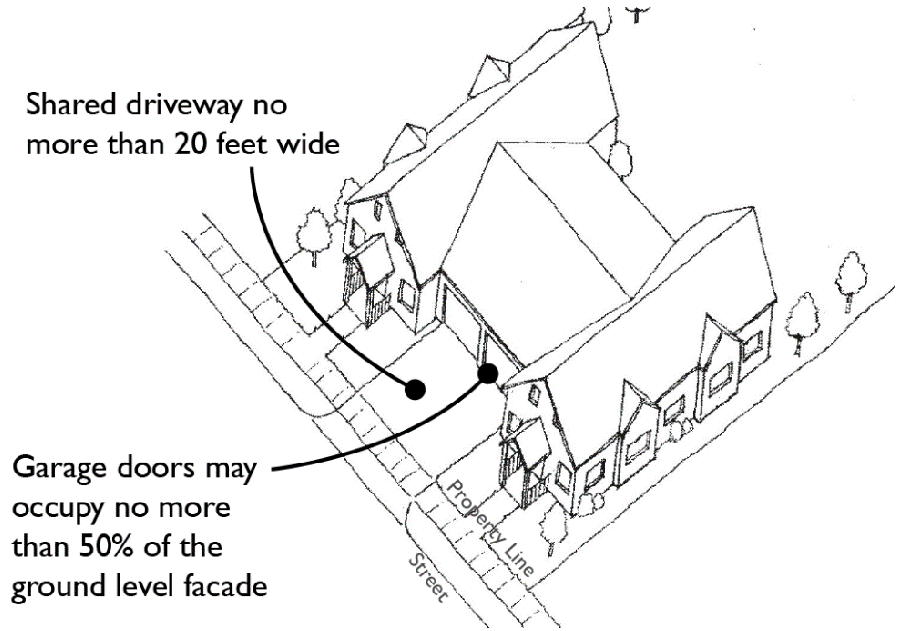 Acceptable and unacceptable townhouse driveway/orientation.