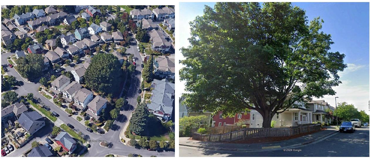 Required trees shall be distributed around the site in front, side, and rear yards, adjacent to parking areas, and/or within private open space adjacent to townhouses.
