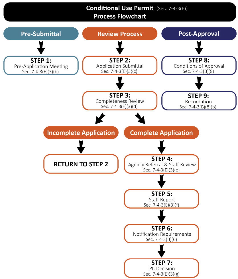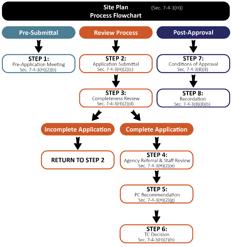 This Section lays out the application types, requirements, and review procedures for requests associated with zoning changes and land use approvals within the Town of Ridgway. These common review procedures provide the foundation for specific review and approval procedures. See those specific sections to determine which of these common review procedures apply to individual applications for development review.