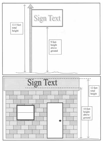 Sign height. The height of a sign shall be measured from the highest point of a sign to the ground surface beneath it. When berms are used in conjunction with signage, the height of the sign shall be measured from the mean elevation of the fronting street. See Figure 16-2 for examples of sign height measurement.
