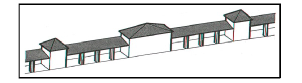 A finished pitched roof surface of standing seam metal, seal tab asphalt shingles, clay tile, slate or wood shingles and overhang, window and door styles, trim features, and other architectural features;