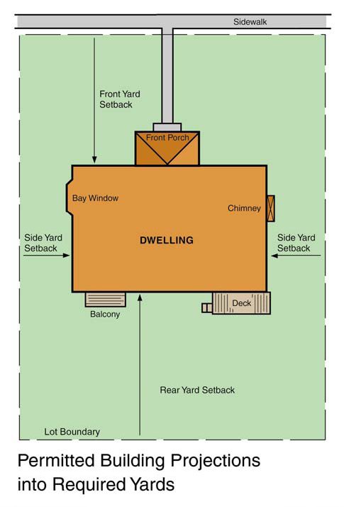 Fire escapes, chimneys, balconies, egress window wells, architectural features, and similar projections shall be considered part of the primary building for purposes of determining yard and setback requirements. However, limited projections into certain required yards shall be permitted as follows: