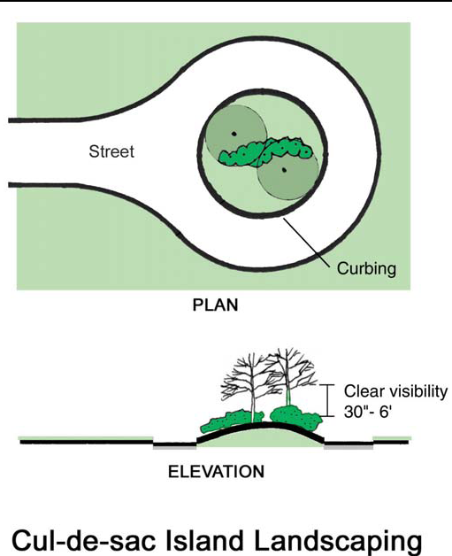 Culs-de-sac and site entrances shall be landscaped with species tolerant of roadside conditions in Wayne County.