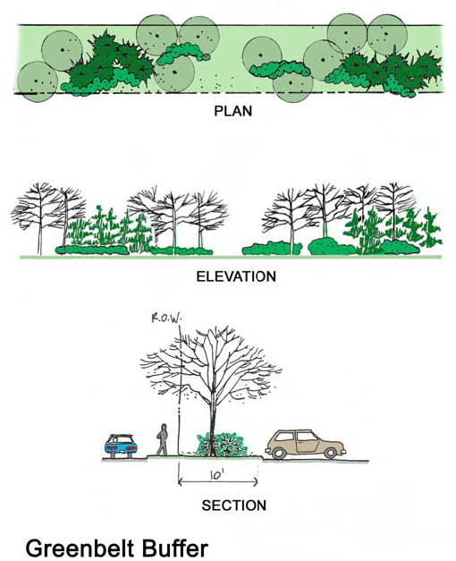 Dimensions. The minimum width of the greenbelt shall be ten (10) feet.