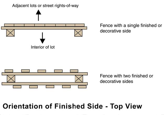 Where one side of a fence or wall has a more finished appearance than the other, the side with the more finished appearance shall face the exterior of the lot.