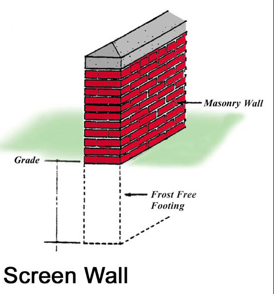 All obscuring walls shall be erected on a concrete foundation approved by the Building Official.