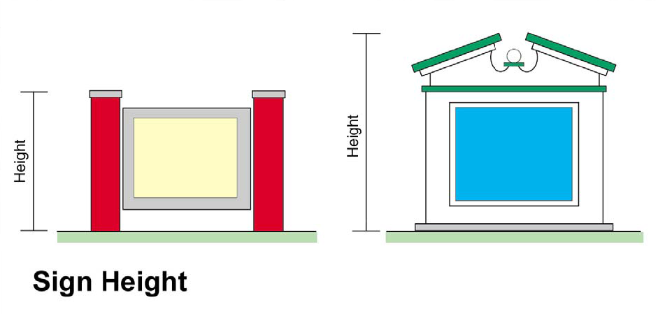 Sign height. The distance from the average level of the ground or pavement directly below the sign to the highest point of the sign structure, including any supportive or decorative elements.
