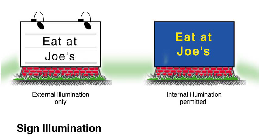 The standards of this subsection are intended to prohibit excessive and poorly shielded illumination of signs in the City; minimize light pollution and light trespass from illuminated signs; and reduce glare impacts on motorists. Internal and external lighting, reflectorized, glowing, and other forms of illumination shall be permitted on all signs, subject to the standards of Article 16 (Exterior Lighting) and the following: