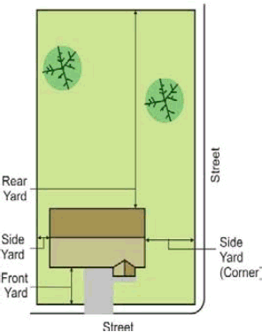 Types of yards. Required yard types are as follows: Front; side; side (corner); and rear.