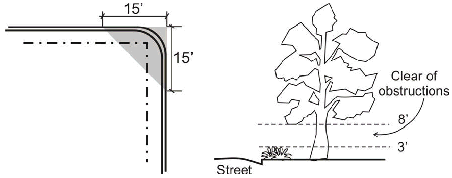 The minimum corner clearance of a residential curb cut is 15 feet.