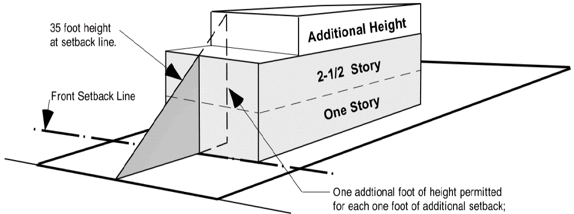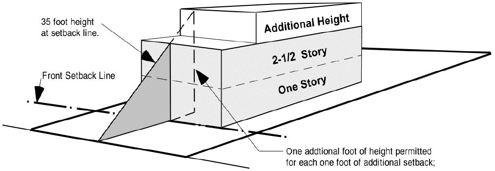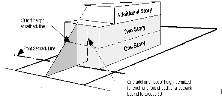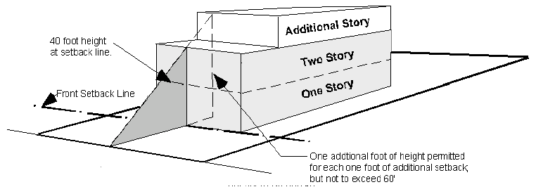 Additional height will be permitted in the "C-2" commercial district for each additional foot that a structure sets back beyond the required front setback. For each one foot of additional setback the structure will be permitted one additional foot of height; but shall not exceed a total height of 60 feet.