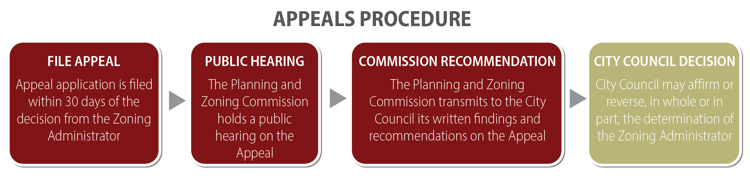 Procedure for appeals. An appeal may be taken from any order, requirement, decision or determination of the zoning administrator. The appeal shall be made within 30 days of the action by filing with the zoning administrator. Upon receipt of the notice of appeal, the zoning administrator must forward to the planning and zoning commission all papers which constitute a record of the action that is being appealed.