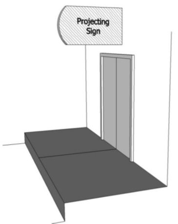 The projecting sign must be mounted perpendicular to the wall.