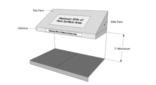 One sign is permitted per awning top surface area.